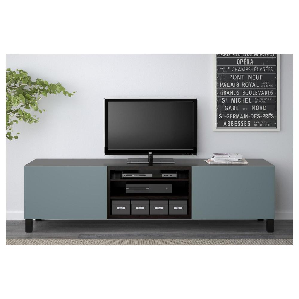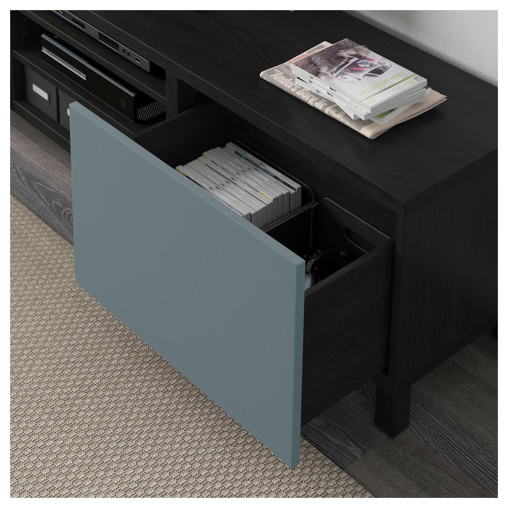 БЕСТО Тумба д/ТВ с ящиками - черно-коричневый/Вальвикен серо-бирюзовый, направляющие ящика, плавно закр