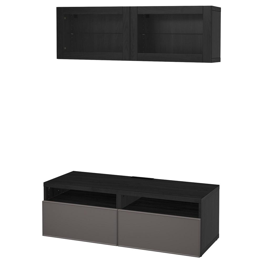 БЕСТО Шкаф для ТВ, комбин/стеклян дверцы - черно-коричневый Грундсвикен/темно-серый прозрачное стекло, направляющие ящика, плавно закр