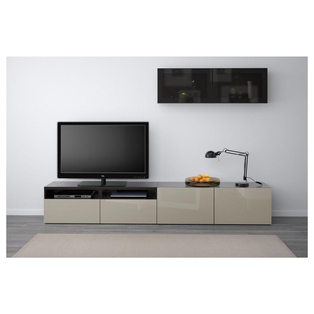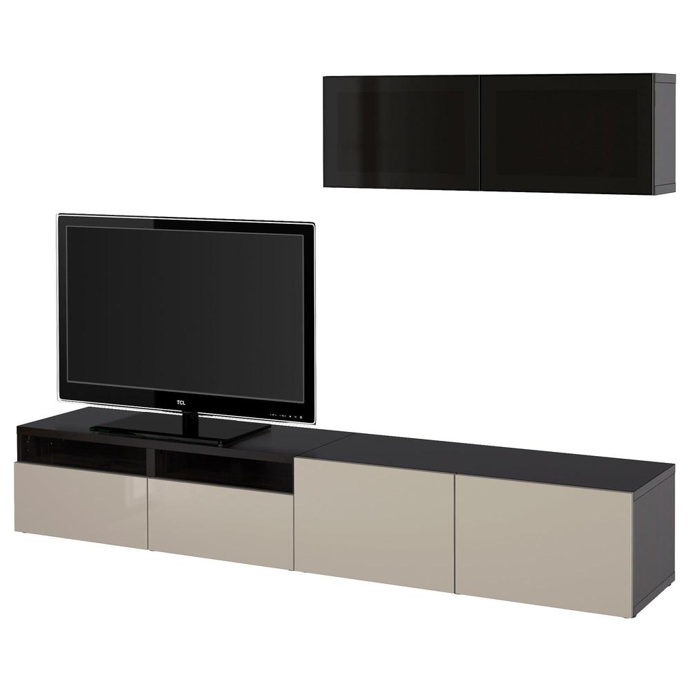 БЕСТО Шкаф для ТВ, комбин/стеклян дверцы - черно-коричневый/Сельсвикен глянцевый/бежевый/дымчатое стекло, направляющие ящика,нажимные