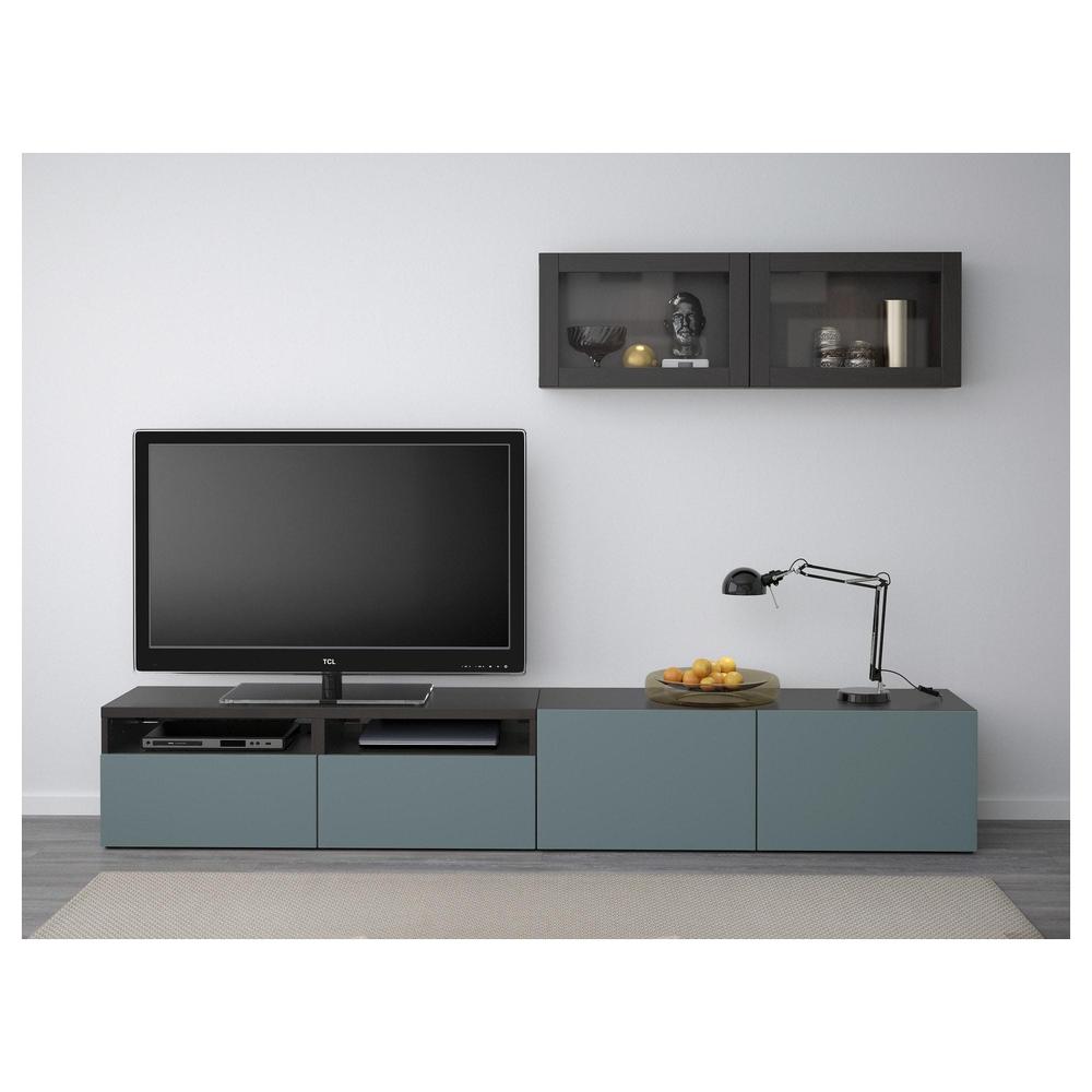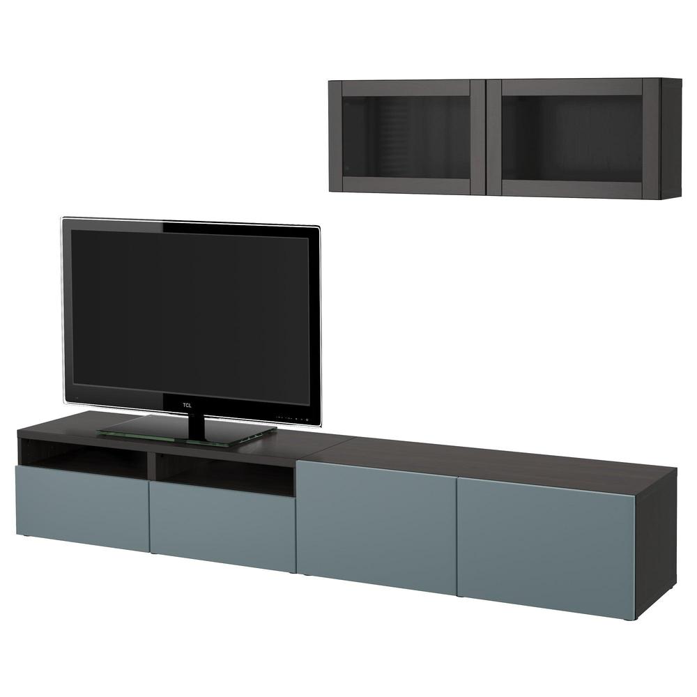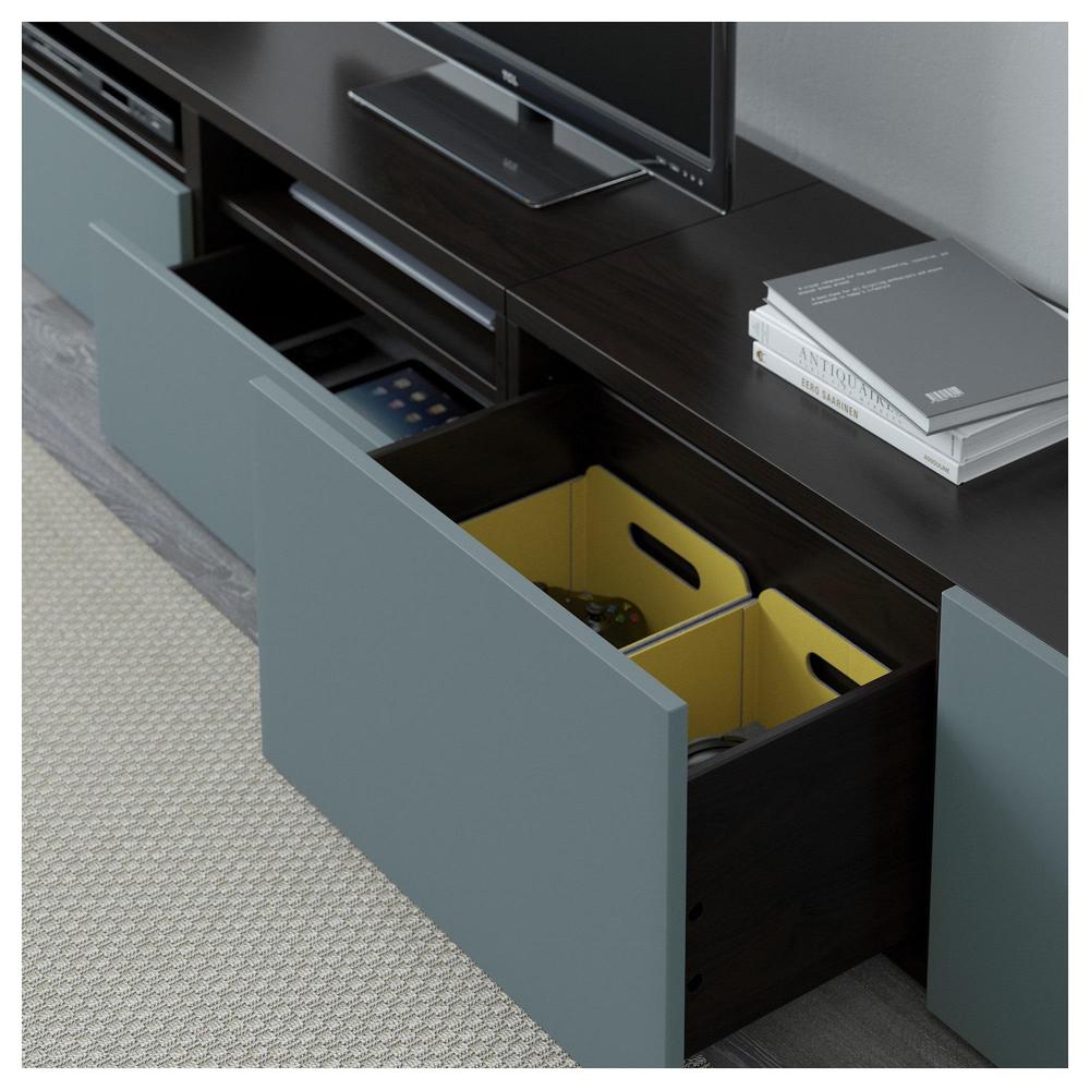 БЕСТО Шкаф для ТВ, комбин/стеклян дверцы - черно-коричневый/Вальвикен серо-бирюзовый, прозрачное стекло, направляющие ящика,нажимные 0.0/5 оценка (0 голосов)