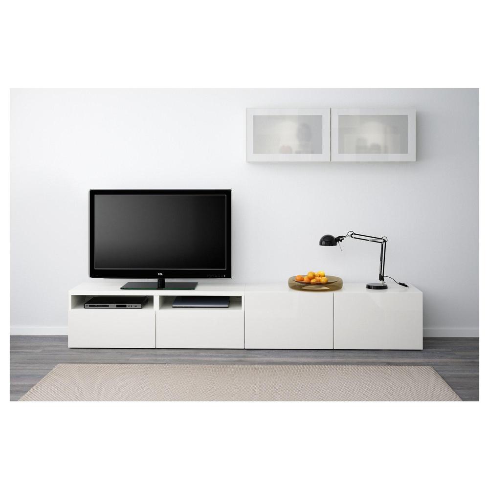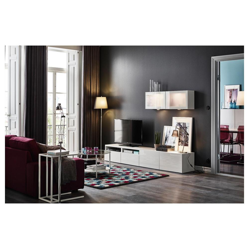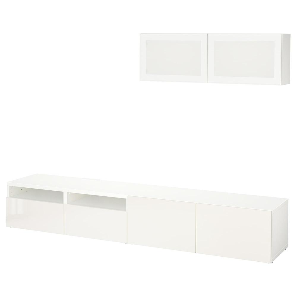 БЕСТО Шкаф для ТВ, комбин/стеклян дверцы - белый/Сельсвикен глянцевый/белый матовое стекло, направляющие ящика, плавно закр 0.0/5 оценка (0 голосов)