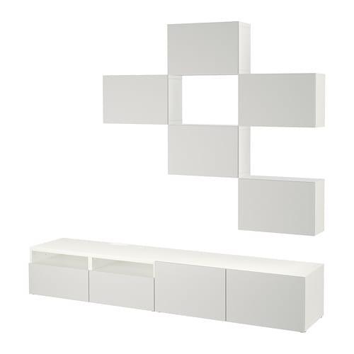 БЕСТО Шкаф для ТВ, комбинация - белый/Лаппвикен светло-серый, направляющие ящика, плавно закр