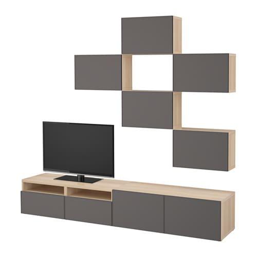 БЕСТО Шкаф для ТВ, комбинация - под беленый дуб/Грундсвикен темно-серый, направляющие ящика,нажимные