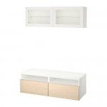 БЕСТО Шкаф для ТВ, комбин/стеклян дверцы - белый Инвикен/ясеневый шпон прозрачное стекло, направляющие ящика, плавно закр