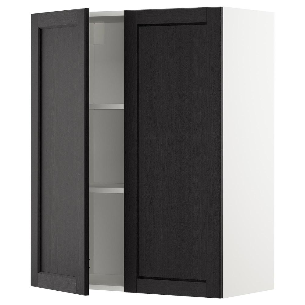 МЕТОД Навесной шкаф с полками/2дверцы - белый, Лерх черная морилка, 80x100 см