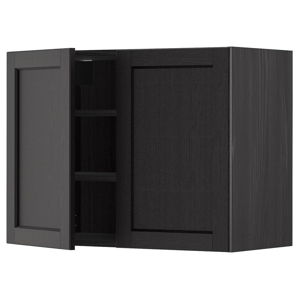 МЕТОД Навесной шкаф с полками/2дверцы - под дерево черный, Лерх черная морилка, 80x60 см