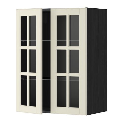 МЕТОД Навесной шкаф с полками/2 стекл дв - под дерево черный, Будбин белый с оттенком, 60x80 см