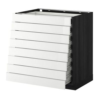 МЕТОД / ФОРВАРА Наполн шкаф 8 фронт/8 низк ящиков - 80x60 см, Рингульт глянцевый белый, под дерево черный