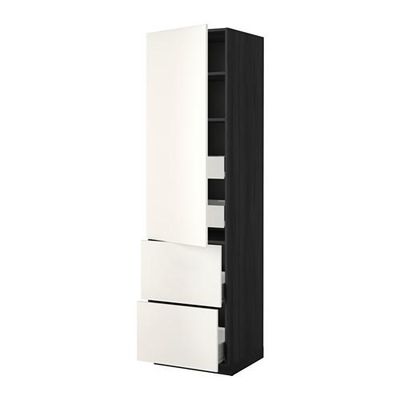 МЕТОД / ФОРВАРА Высокий шкаф+полки/4 ящика/2дверцы - 60x60x220 см, Веддинге белый, под дерево черный