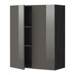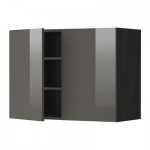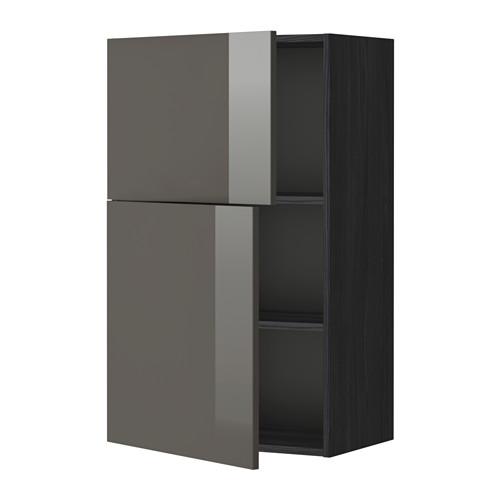 МЕТОД Навесной шкаф с полками/2дверцы - Рингульт глянцевый серый, под дерево черный