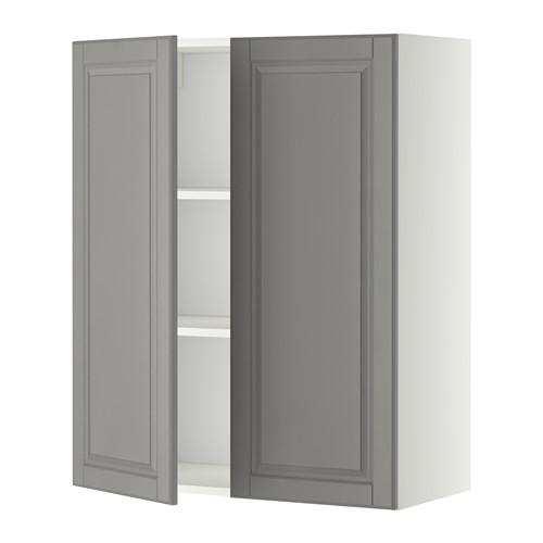 МЕТОД Навесной шкаф с полками/2дверцы - белый, Будбин серый, 80x100 см