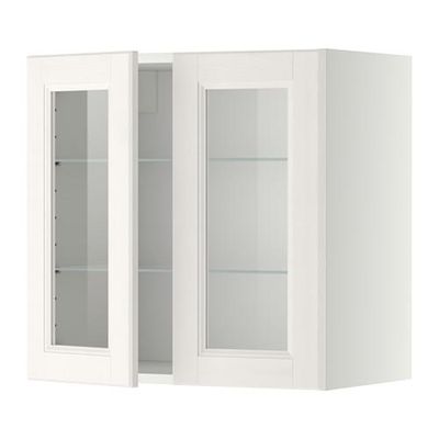 МЕТОД Навесной шкаф с полками/2 стекл дв - 60x60 см, Лаксарби белый, белый
