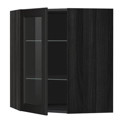 МЕТОД Углов навесн шк с полками/сткл дв - 68x80 см, Лаксарби черно-коричневый, под дерево черный