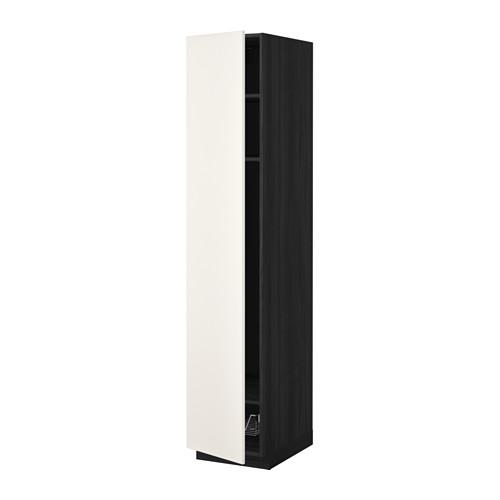 МЕТОД Выс шкаф с полками/проволоч корзин - под дерево черный, Веддинге белый, 40x60x200 см