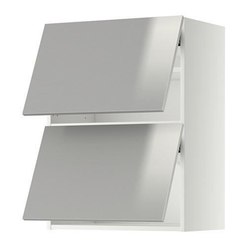 МЕТОД Навесной шкаф/2 дверцы, горизонтал - белый, Гревста нержавеющ сталь, 60x80 см