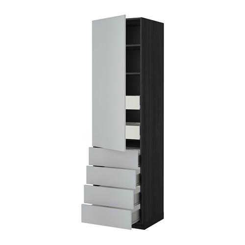 МЕТОД / ФОРВАРА Выс шкаф с плк/6 ящк/ дверц/4 фрнт - 60x60x220 см, Веддинге серый, под дерево черный