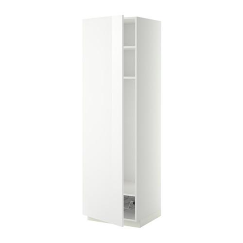 МЕТОД Выс шкаф с полками/проволоч корзин - белый, Рингульт глянцевый белый, 60x60x200 см