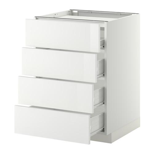 МЕТОД / ФОРВАРА Напольн шкаф/4фронт пнл/4ящика - 60x60 см, Рингульт глянцевый белый, белый