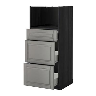 МЕТОД / ФОРВАРА Высокий шкаф д/СВЧ с 3 ящиками - Будбин серый, под дерево черный
