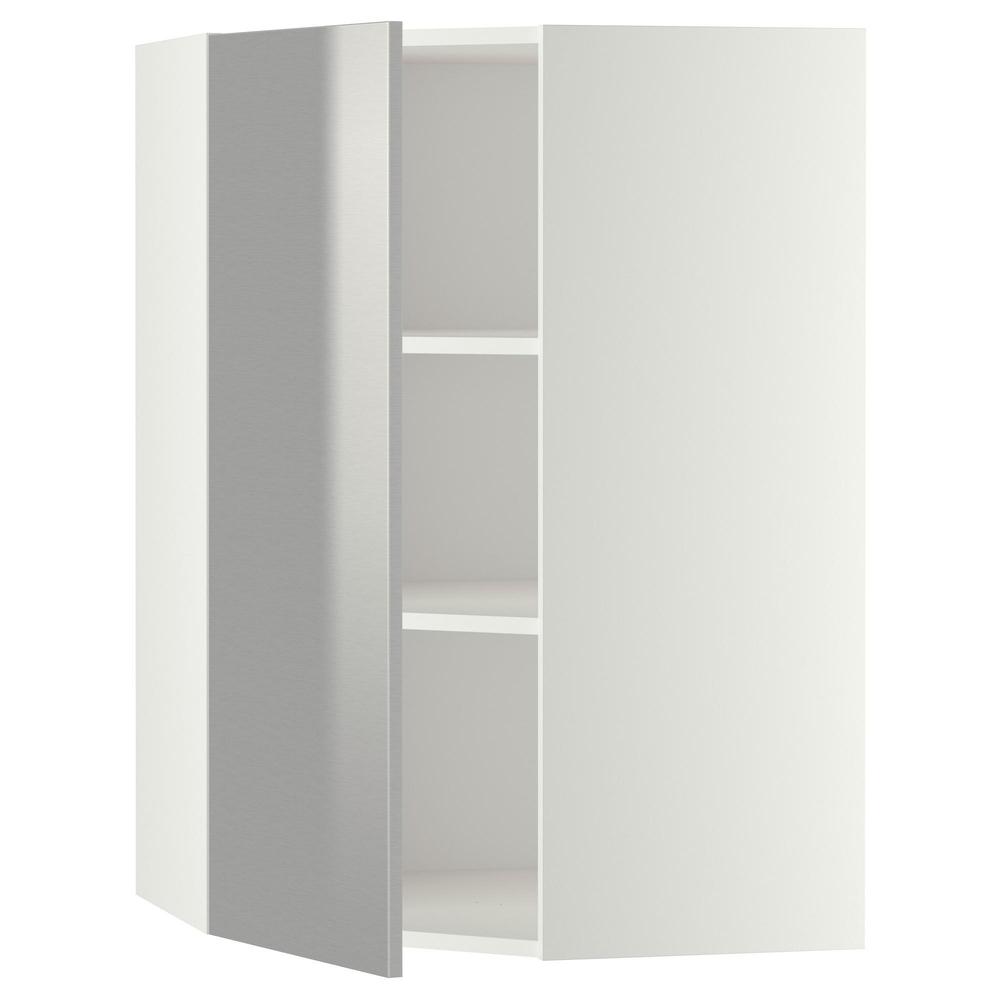 МЕТОД Угловой навесной шкаф с полками - белый, Гревста нержавеющ сталь, 68x100 см