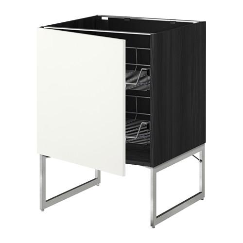 МЕТОД Напольный шкаф с проволочн ящиками - под дерево черный, Хэггеби белый, 60x60x60 см