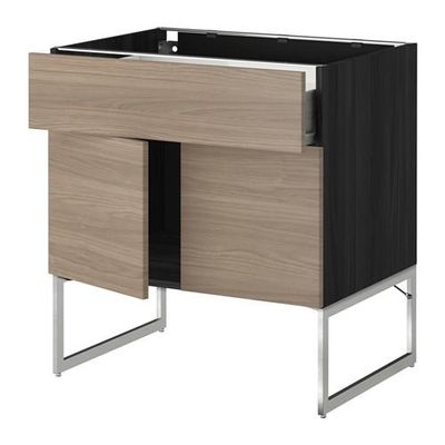 МЕТОД / ФОРВАРА Напол шкаф/полки/ящик/2двери - Брокхульт под грецкий орех светло-серый, под дерево черный