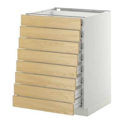 МЕТОД / ФОРВАРА Наполн шкаф 8 фронт/8 низк ящиков - 60x60 см, Тингсрид под березу, белый