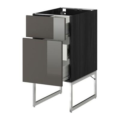 МЕТОД / ФОРВАРА Наполн шк 2 фрнт/3 средн ящ - 40x60x60 см, Рингульт глянцевый серый, под дерево черный