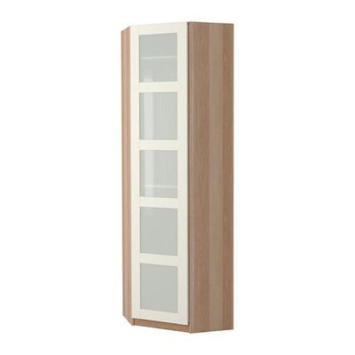 ПАКС Гардероб угловой - 73/73x236 см, Бергсбу матовое стекло/белый, под беленый дуб