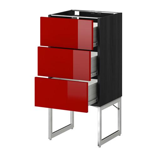 МЕТОД / ФОРВАРА Нплн шк 3 фрнт/3 средн ящика - 40x37x60 см, Рингульт глянцевый красный, под дерево черный