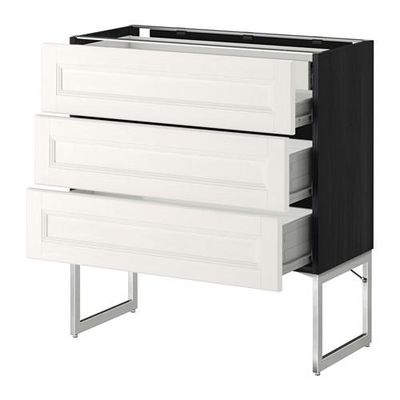 МЕТОД / ФОРВАРА Напольн шкаф 3фронт пнл/2низ/2ср ящ - 80x37x60 см, Лаксарби белый, под дерево черный