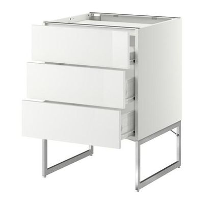МЕТОД / ФОРВАРА Напольн шкаф/3фронт пнл/3ящика - 60x60x60 см, Рингульт глянцевый белый, белый