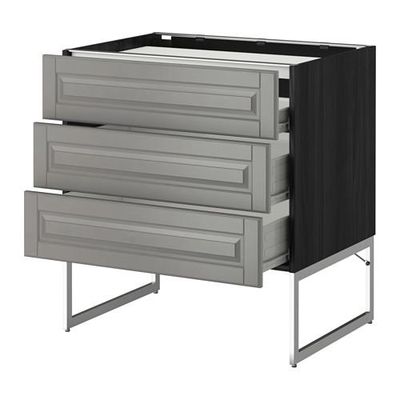МЕТОД / ФОРВАРА Напольн шкаф/3фронт пнл/3ящика - 80x60x60 см, Будбин серый, под дерево черный