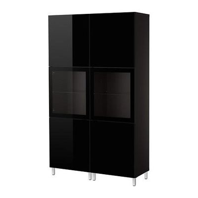 БЕСТО Комбинация д/хранения с зерк дверц - черно-коричневый/Тофта глянцевый/черный прозрачное стекло