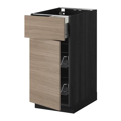 МЕТОД / ФОРВАРА Напольн шкаф с пров корз/ящ/дверью - 40x60 см, Брокхульт под грецкий орех светло-серый, под дерево черный
