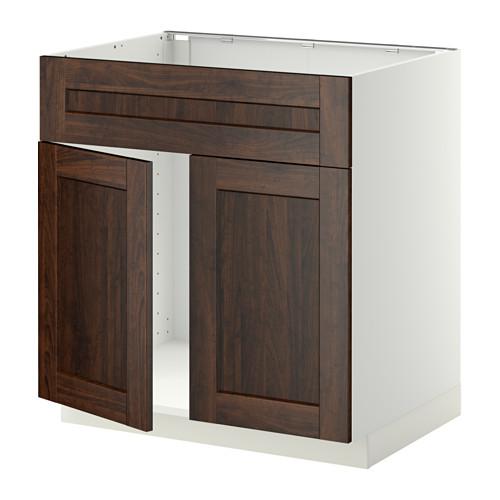 МЕТОД Напольн шкаф п-мойку 2 двр/фрн пнл - белый, Эдсерум под дерево коричневый