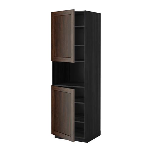МЕТОД Выс шкаф д/СВЧ/2 дверцы/полки - под дерево черный, Эдсерум под дерево коричневый, 60x60x200 см