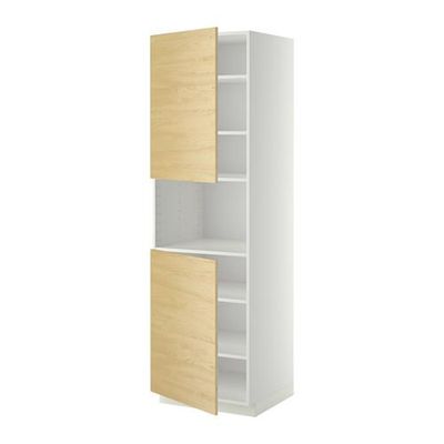 МЕТОД Выс шкаф д/СВЧ/2 дверцы/полки - 60x60x200 см, Тингсрид под березу, белый