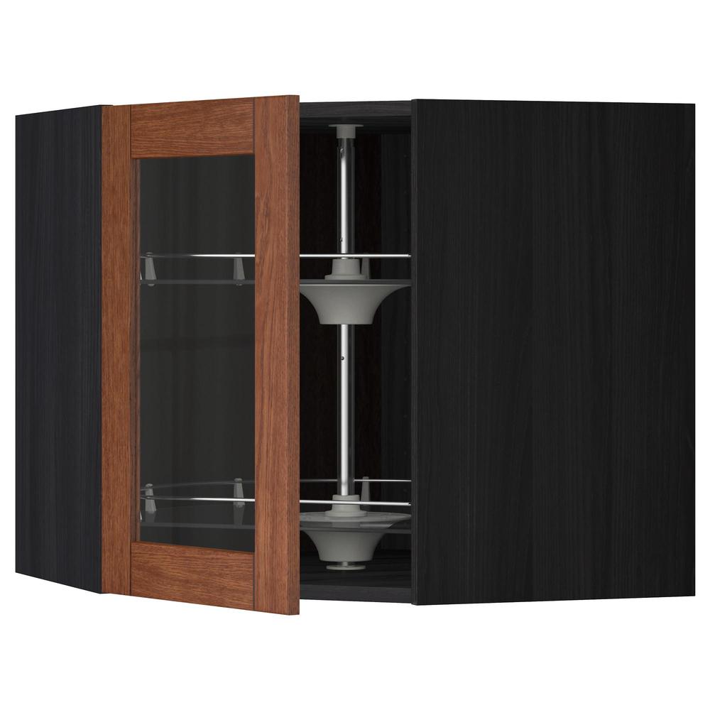 МЕТОД Углов навесн шк с врщ скц/сткл дв - под дерево черный, Филипстад коричневый, 68x60 см