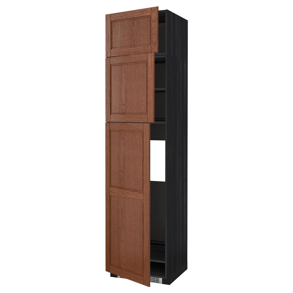 МЕТОД Высокий шкаф д/холодильника/3дверцы - под дерево черный, Филипстад коричневый