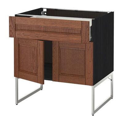 МЕТОД / ФОРВАРА Напол шкаф/полки/ящик/2двери - под дерево черный, Филипстад коричневый