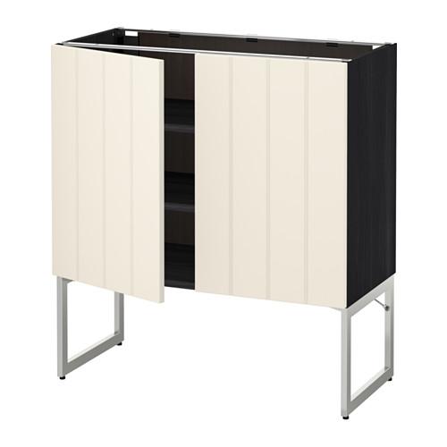 МЕТОД Напол шкаф с полками/2двери - под дерево черный, Хитарп белый с оттенком, 80x37x60 см