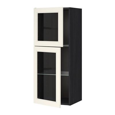 МЕТОД Навесной шкаф с полками/2 стекл дв - под дерево черный, Хитарп белый с оттенком