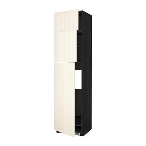МЕТОД Высокий шкаф д/холодильника/3дверцы - под дерево черный, Хитарп белый с оттенком