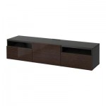 БЕСТО Тумба под ТВ - черно-коричневый/Сельсвикен глянцевый/коричневый, направляющие ящика,нажимные