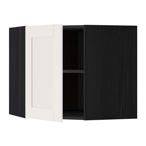 МЕТОД Угловой навесной шкаф с полками - под дерево черный, Сэведаль белый, 68x60 см