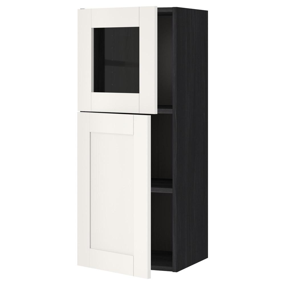 МЕТОД Навесн шкаф/полки/дверь/стекл дверь - под дерево черный, Сэведаль белый