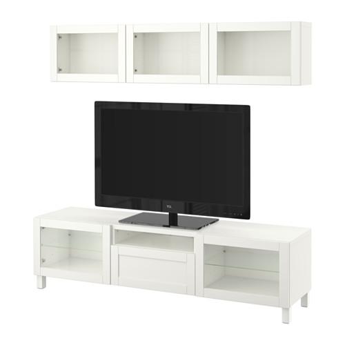 БЕСТО Шкаф для ТВ, комбин/стеклян дверцы - Ханвикен/Синдвик белый прозрачное стекло, направляющие ящика,нажимные