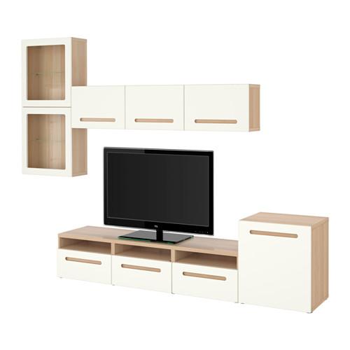 БЕСТО Шкаф для ТВ, комбин/стеклян дверцы - под беленый дуб/Марвикен белый прозрачное стекло, направляющие ящика, плавно закр