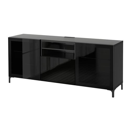 БЕСТО Тумба д/ТВ с ящиками - черно-коричневый/Сельсвикен глянцевый/черный прозрачное стекло, направляющие ящика, плавно закр